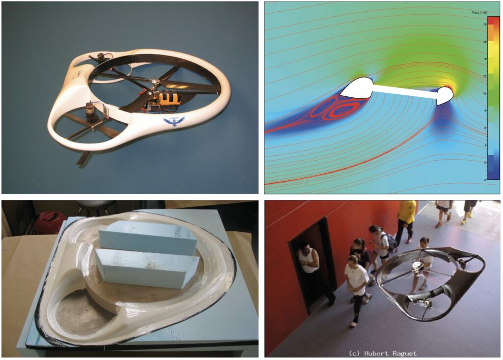 – Conception de la plate-forme volante sans pilote et réglage du Pilote Automatique : optimisation globale (masse, propulsion, aérodynamique, mécanique du vol, systèmes de commandes). Outils théoriques, numériques et expérimentaux (consuite d’essais en soufflerie et en vol).