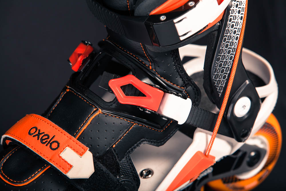 Système « Sneakin » ou « Step-In » d’OXELO. Ce système permet d’utiliser ses propres chaussures de ville sur ses rollers, offrant un passage du mode « à pied » au mode « roller » en quelques secondes. Mobilité fluide : Une solution de rupture pour la glisse urbaine, éliminant la contrainte de transporter une paire de chaussures de rechange. Innovation technique : Développement d’un mécanisme de verrouillage rapide, sécurisé et rigide, garantissant un transfert de puissance optimal entre la chaussure et la platine.