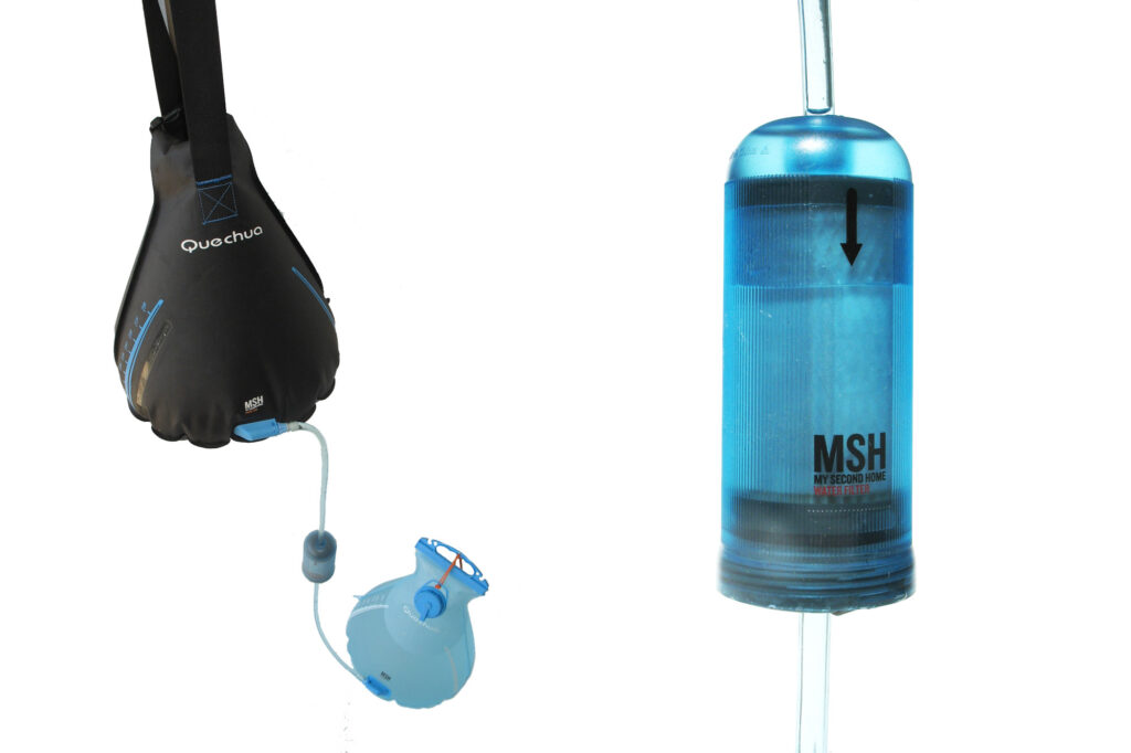 L’autonomie en eau et énergie, produits développés pour Quechua (poches à eau, douche solaire, filtre microbiologie pour eau, batteries rechargeables, panneau solaire, réchaud bois…).